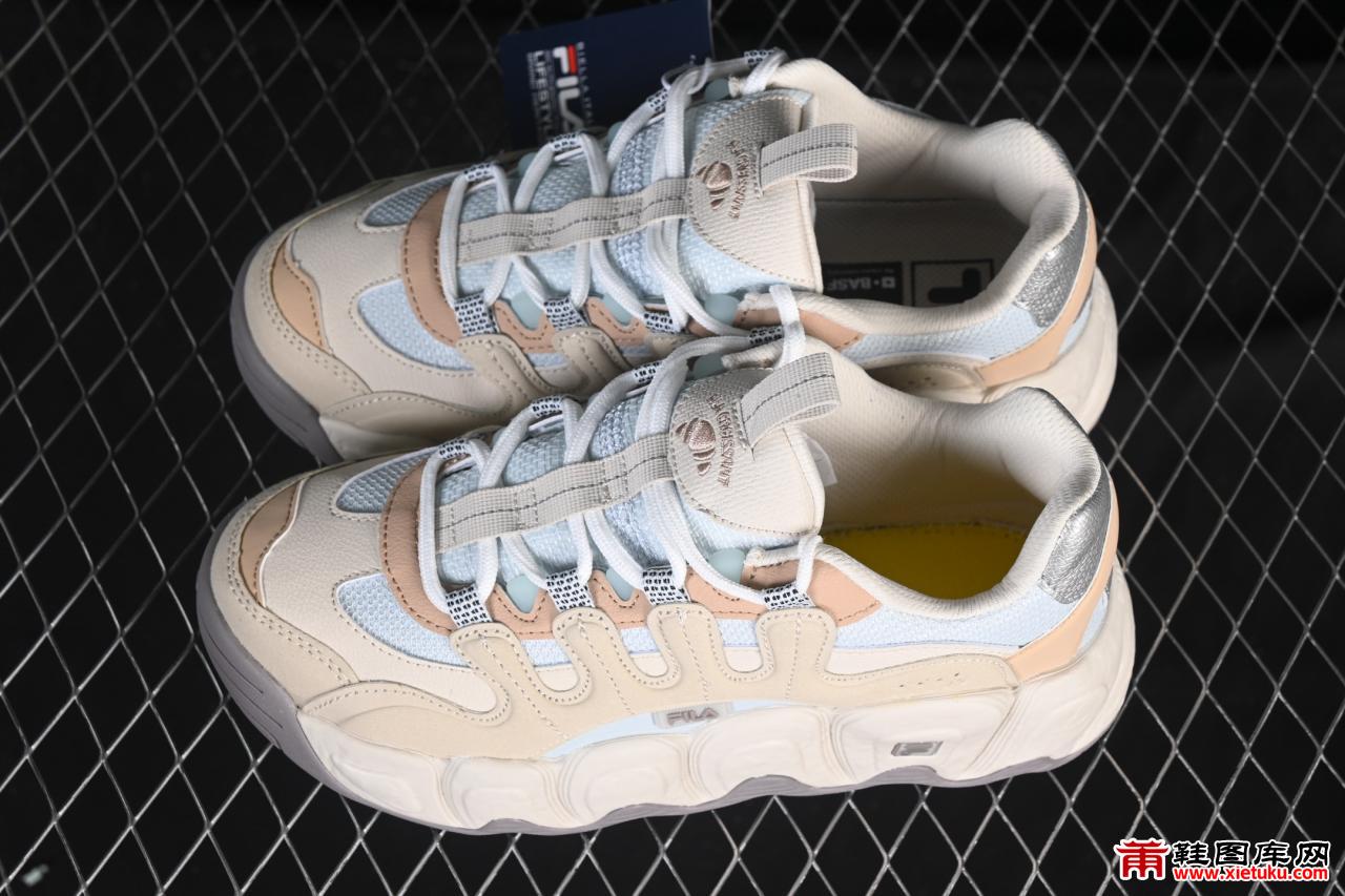 鞋面采用轻质环保太空革与高密度透气网织布拼接工艺,兼顾质感与功能性。太空革材质不仅柔软耐用、易于打理,还具备良好的抗风防泼性能,适合秋冬季节多变气候;而大面积网眼织物则有效提升整鞋透气性,促进鞋内空气循环,减少闷热感,保持足部干爽舒适,长时间行走也不易疲劳。鞋身整体线条流畅,配色简约大气,经典的FILA logo标识点缀侧面,彰显品牌格调,展现低调不失高级的运动美学。