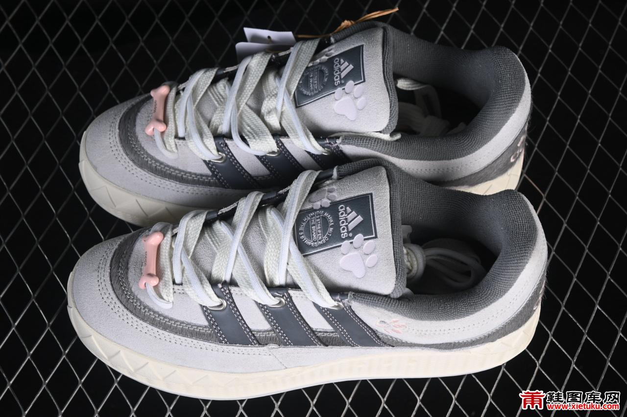 当潮流领袖Nigo的个人品牌Human Made与阿迪达斯经典档案Adimatic相遇,这双JQ2612联名款便成为了复古玩家瞩目的焦点。它精准复刻了90年代滑板鞋的厚重轮廓,圆润饱满的鞋身与宽大的鞋头被昵称为“鲨鱼面包”,侧边锯齿状的三条纹设计正是其凶猛绰号的由来。Human Made标志性的心形Logo、鸭子图案或复古标语,以刺绣或胶印形式巧妙点缀于鞋舌、后跟等细节之处,在复刻经典的同时,注入了独有的趣味与灵魂,使其成为一件有故事的潮流单品。