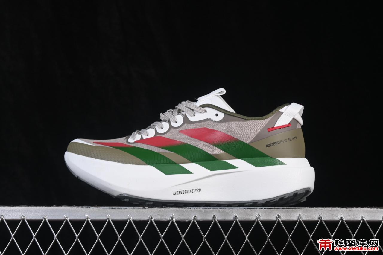这双Adizero Evo SL是阿迪达斯为追求效率与舒适的跑者打造的均衡之作。KK0307货号承载着系列的轻量化基因,通过流线型低帮设计与精密工程网眼鞋面,实现了显著的减重效果与透气性能。鞋身线条干净利落,没有冗余结构,力求在运动中降低风阻。其设计哲学并非追求单一的竞速极致,而是在轻量、透气与必要保护之间寻找理想平衡点,使其能够胜任从日常慢跑到健身房训练的多种场景。