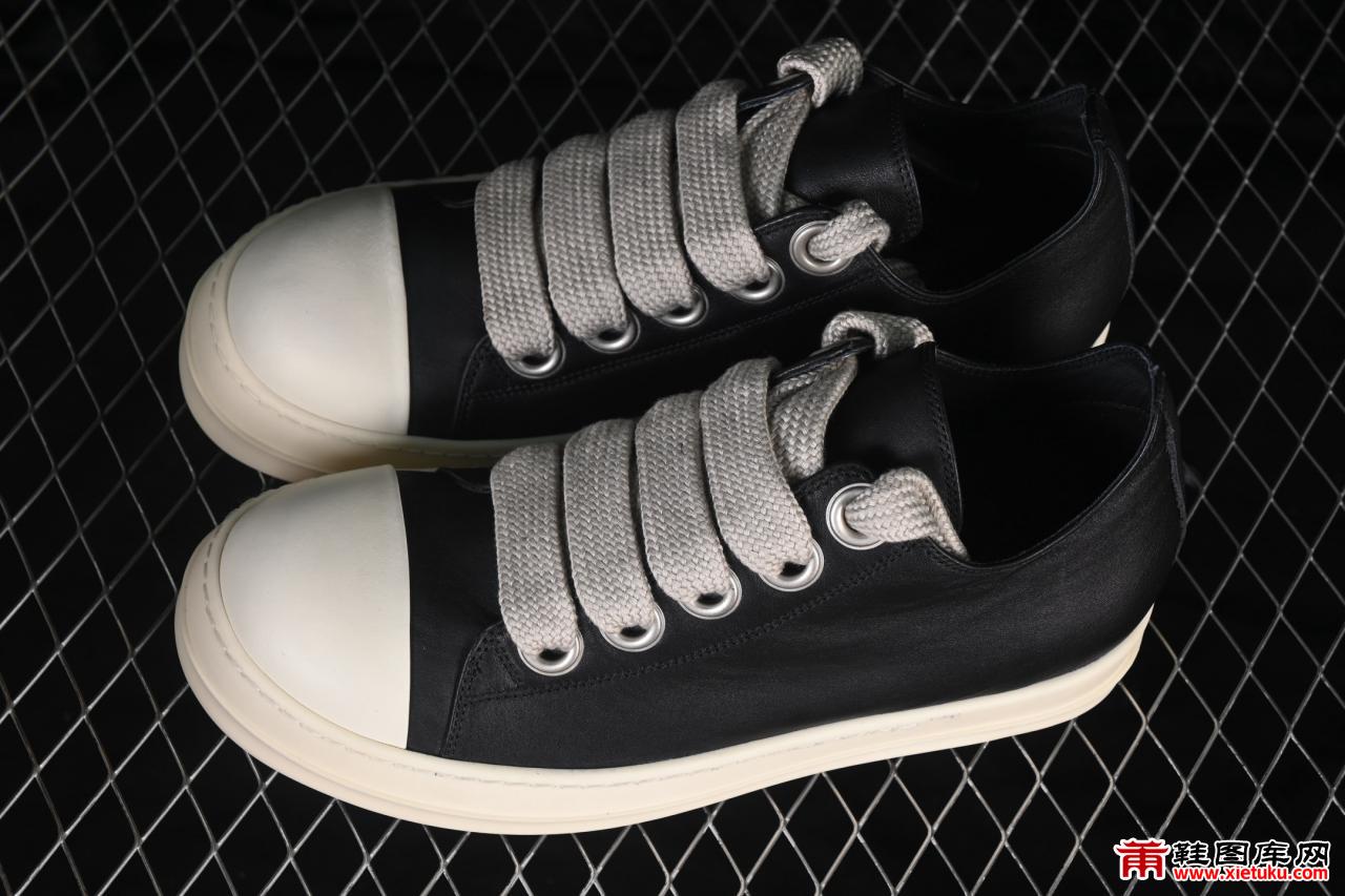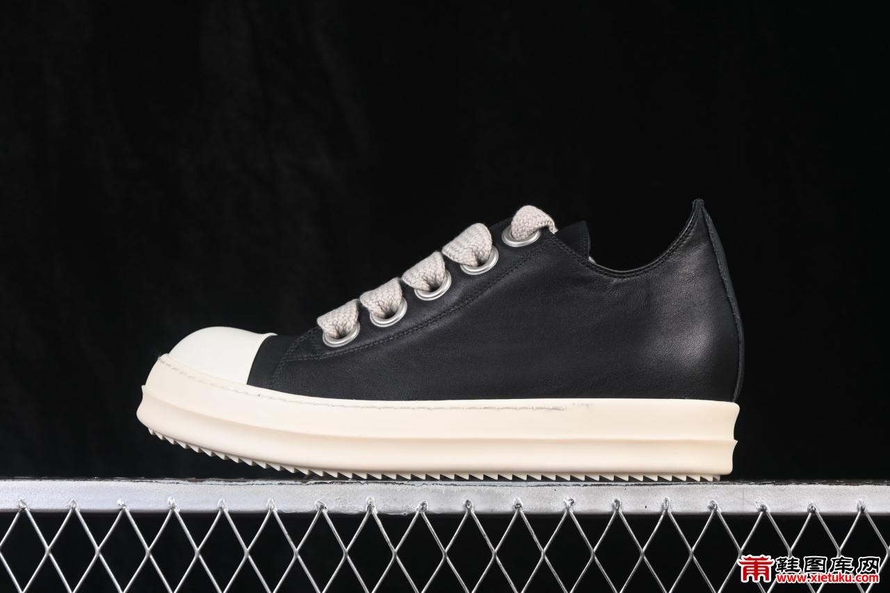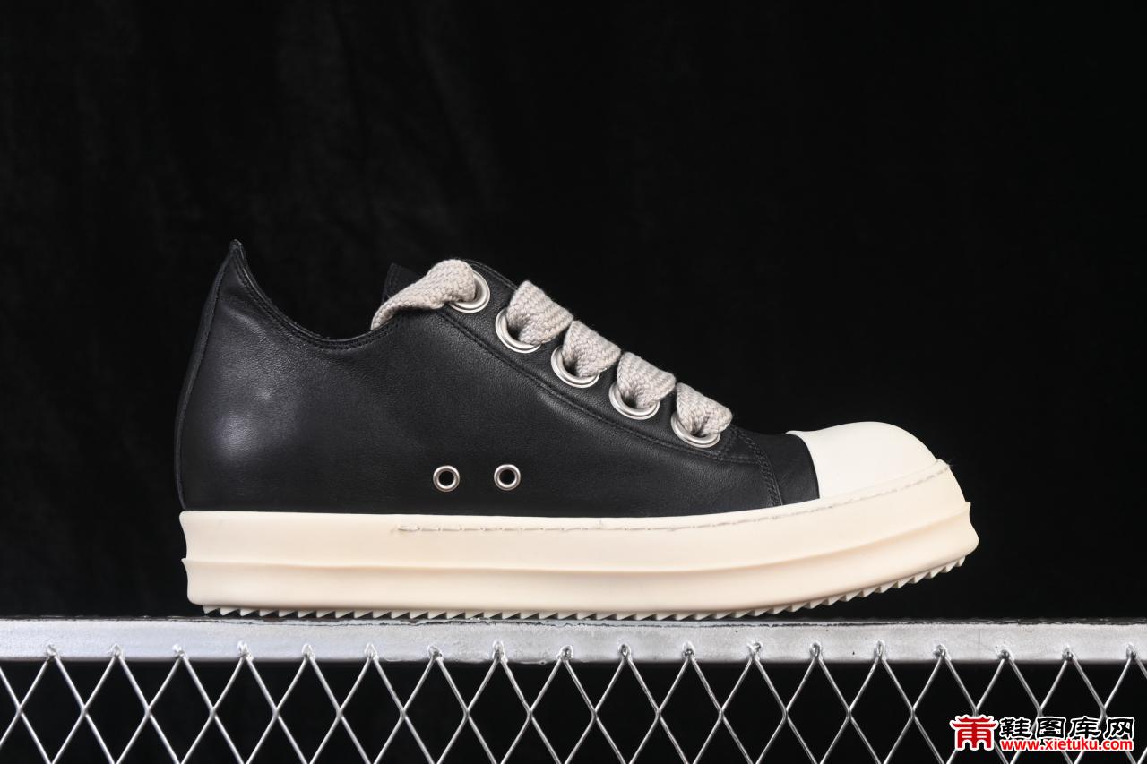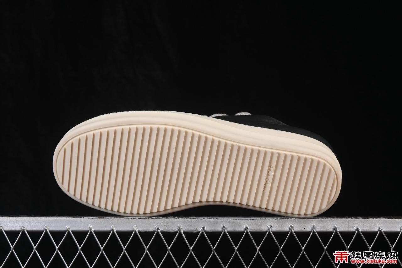 Rick Owens的东西,从来不是为了讨好大多数人而存在的。这双RU02B2897 LPOLVS拿到手,第一反应就是“沉”,不是重量上的沉,是那种气质上的压迫感。全头层小牛皮的鞋面摸上去又软又糯,但又足够厚实,一看就是能穿很多年的料子。鞋型是典型的欧文斯风格——圆头、扁身、长线条,看起来有点笨笨的,但上脚之后那个味道就出来了,裤脚盖上去只露出鞋头,那种慵懒又带点颓废的感觉,只有欧文斯能给。