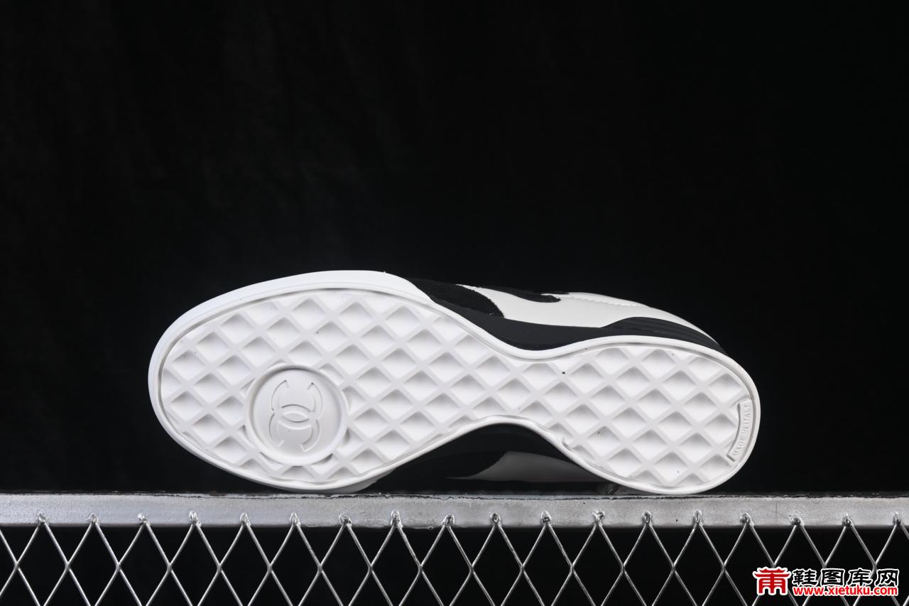 这双G40179拿在手里,第一反应是“香奈儿终于把德训鞋玩明白了”。德训鞋这个鞋型,从上世纪七八十年代的德国联邦国防军训练鞋开始,到现在被各种品牌翻来覆去地做,早就不是什么新鲜东西了。但香奈儿一出手,味道就完全不一样。鞋身侧面那个双C Logo不是贴上去的,是压印在皮料上的,低调得要命,但懂的人一眼就能认出来。这种“我知道你知道”的小心思,才是奢侈品做运动鞋的精髓。