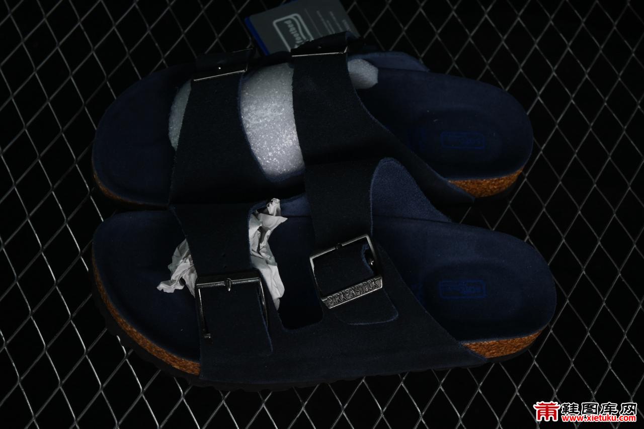 Birkenstock 1009527勃肯软木底牛皮绒面革深蓝色凉鞋 羊羔毛内衬鞋垫里衬